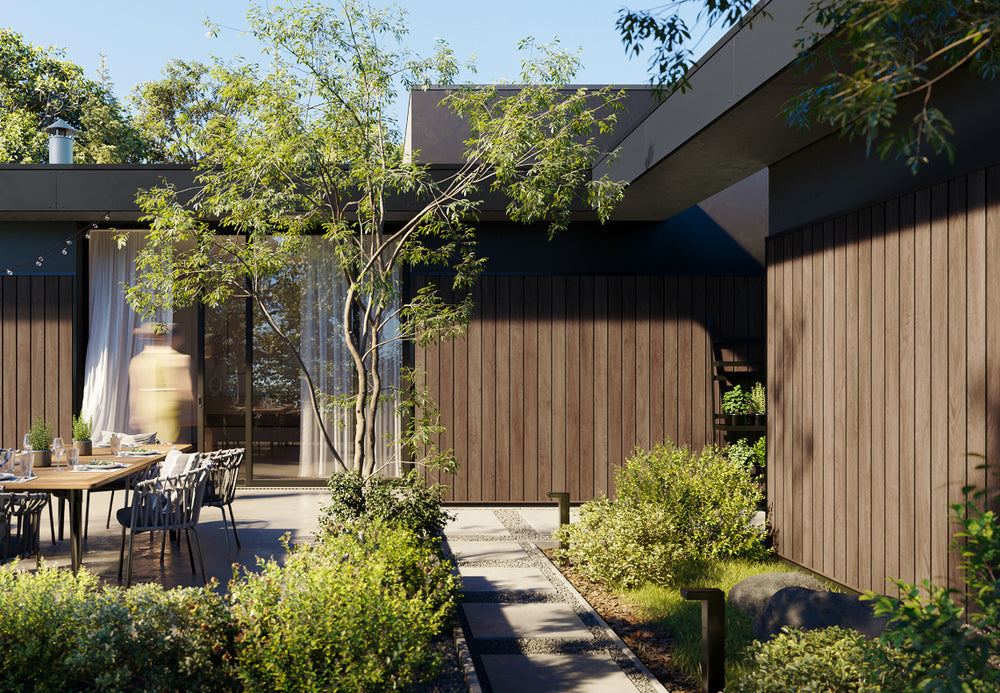 Distinse prin durabilitate exceptionala si rezistenta la factorii externi, panourile Solvo sunt performante datorita structurii celulare si materialelor premium utilizate. Nuantele atent selectate cu aspect de lemn, optiunea de montaj cu rost sau fara, precum si libertatea de a alege directia instalarii — verticala sau orizontala — permit crearea unui aspect sofisticat al fatadelor. In plus, varianta cu rosturile inchise la culoare evidentiaza structura tridimensionala a panourilor, conferind profunzime si eleganta suprafetei.