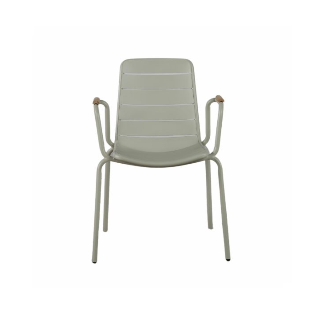 Scaunul Parc imbina designul scandinav cu functionalitatea ridicata si durabilitatea de lunga durata. Cadrul din aluminiu, in nuanta verde masliniu, ofera scaunului un aspect modern si totodata atemporal, potrivindu-se perfect in orice decor exterior.