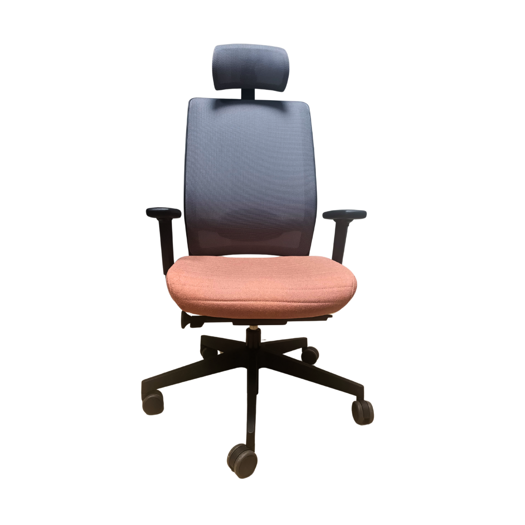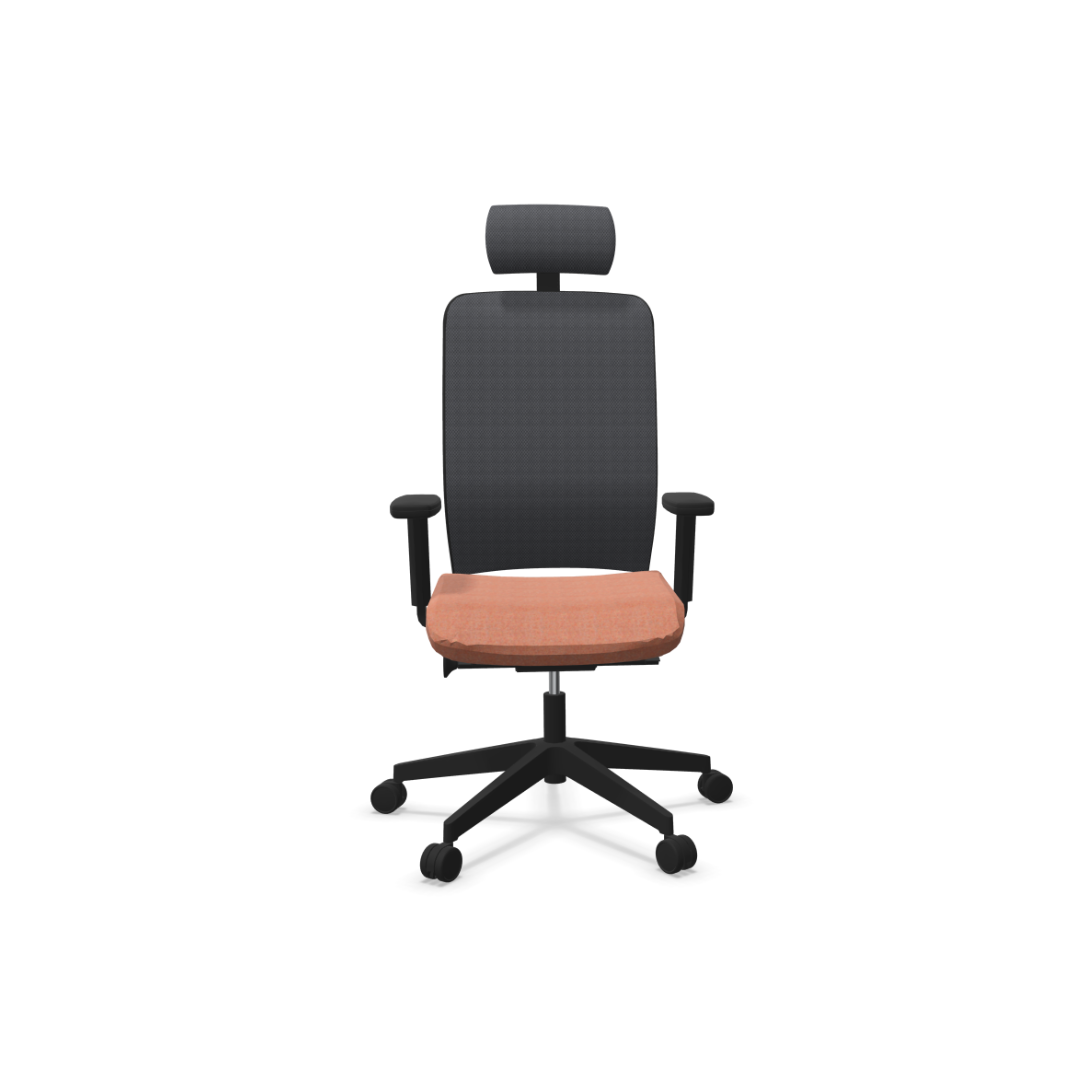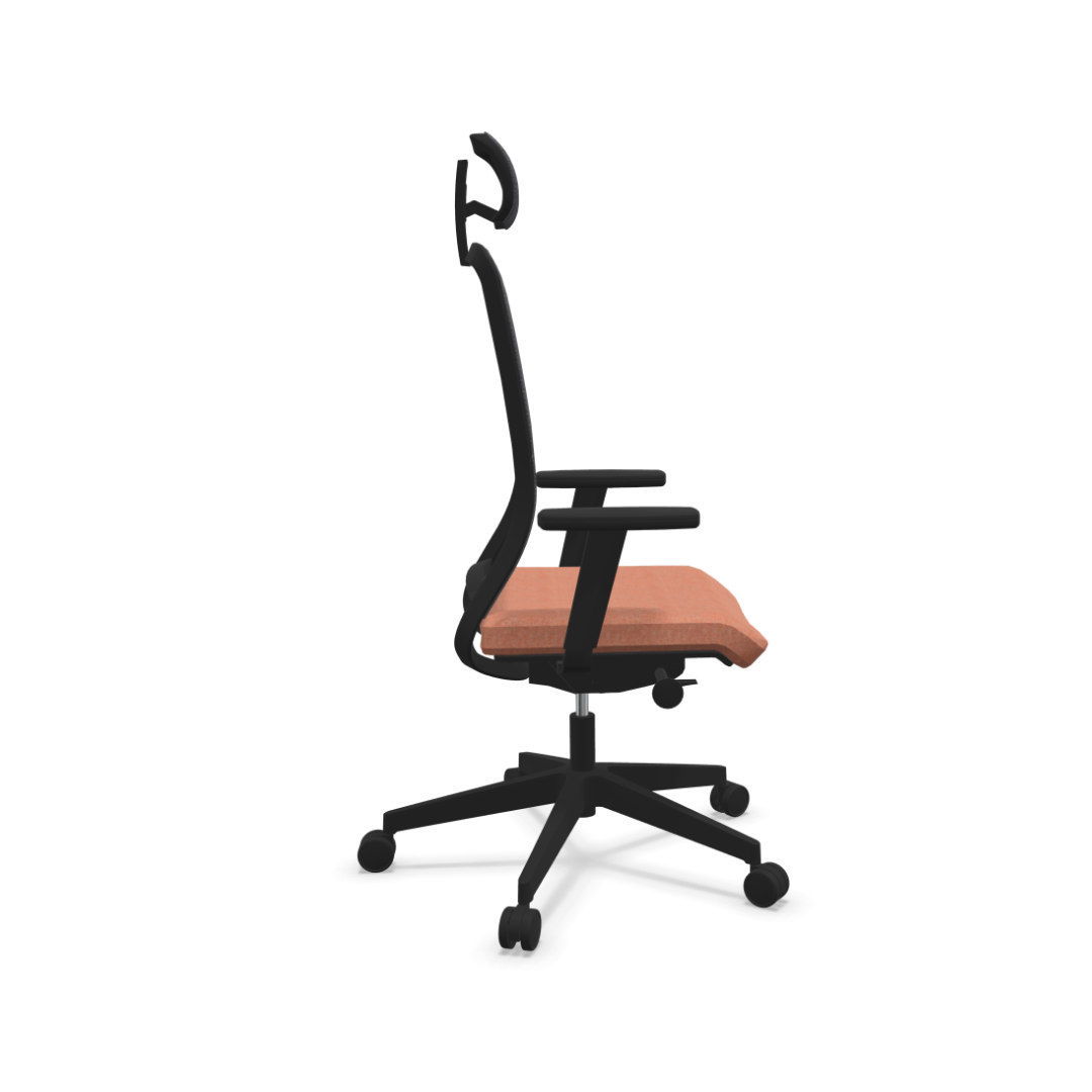 Scaunul este echipat cu un tetier reglabil, cu material de tip plasa (mesh) in nuanta 60011 Runner, asortat cu spatarul ventilat din aceeasi gama cromatica. Acest material permite o buna circulatie a aerului, mentinand confortul chiar si in perioadele indelungate de utilizare.