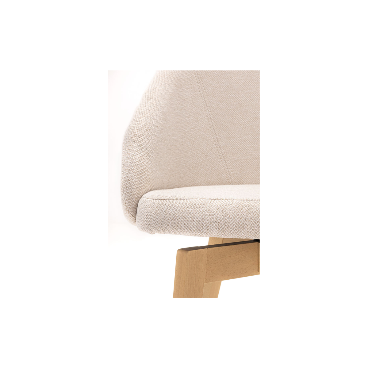 - Șezutul și spătarul scaunului sunt tapițate cu o țesătură în culoarea bej nisipiu.
