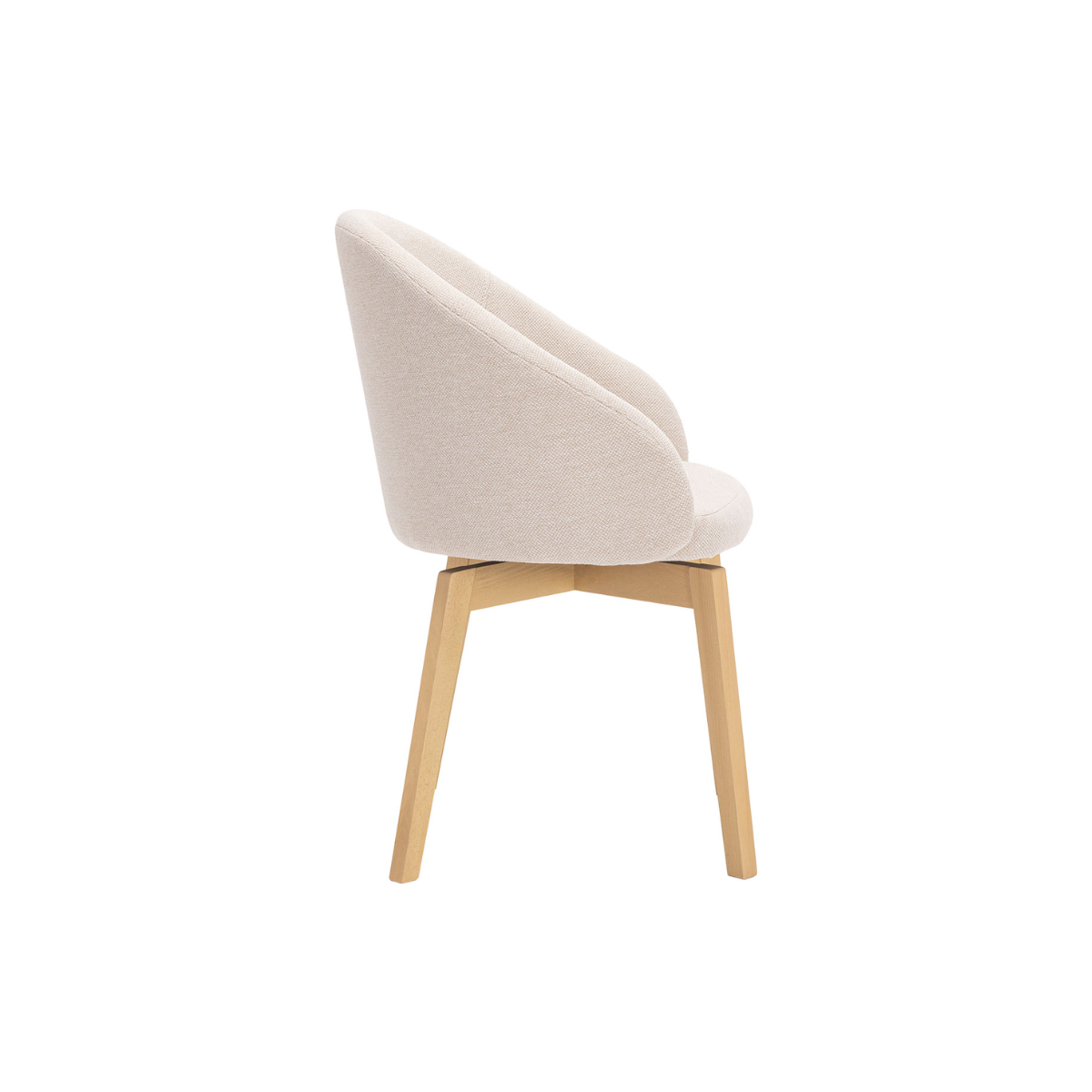 Scaunul rotativ Onest se remarcă prin detalii rafinate și prin șezutul rotativ care facilitează schimbarea poziției și crește confortul la masă. Spătarul profilat oferă o susținere plăcută, iar cotierele permit relaxarea brațelor.