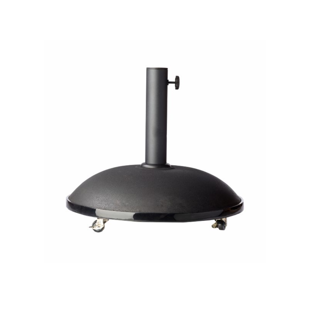 Baza rotunda pentru umbrela Basic, in clasicul negru, reprezinta o solutie solida si fiabila pentru fixarea umbrelelor de exterior. Fabricata din beton durabil, aceasta este prevazuta cu un inel din plastic compatibil cu stalpi de umbrela cu diametrul cuprins intre 38 si 58 mm, asigurand astfel o prindere stabila.