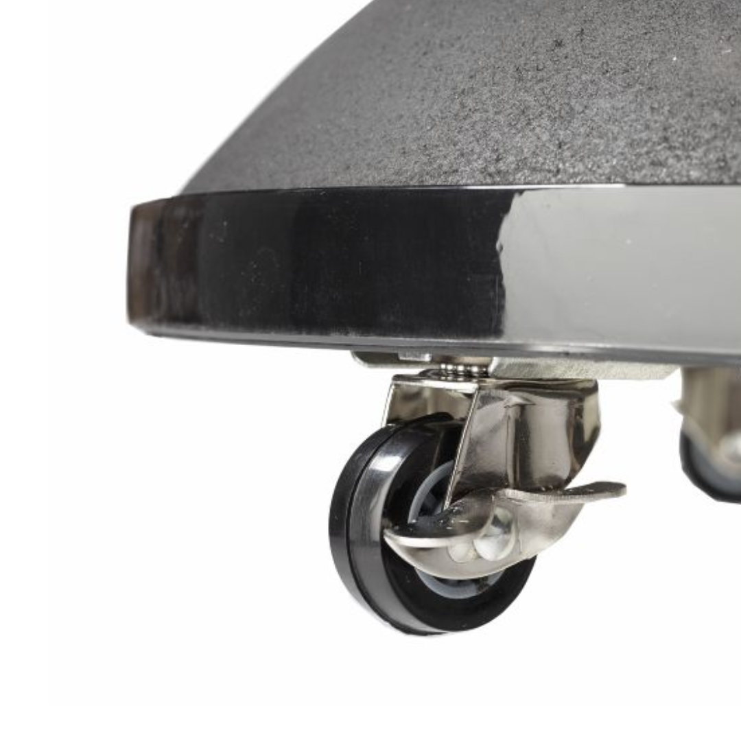 Tubul din otel, acoperit cu un strat protector de vopsea pulbere, confera rezistenta sporita, iar rotile cu role si picioarele din cauciuc ofera mobilitate si protectie pentru suprafetele pe care este amplasata. Cu o greutate de 50 kg, aceasta baza ofera sustinerea necesara pentru a mentine umbrela ferma si sigura, chiar si in conditii de vant usor.